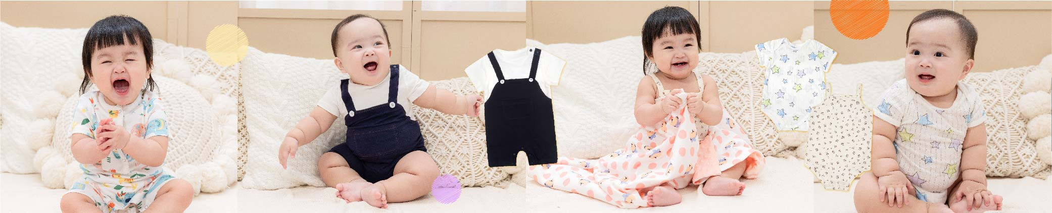 有機棉雙拉鍊長袖連身衣-黃色雲朵