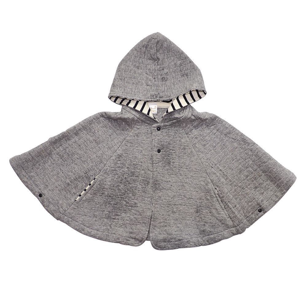 有機棉鋪棉連帽斗篷-灰色