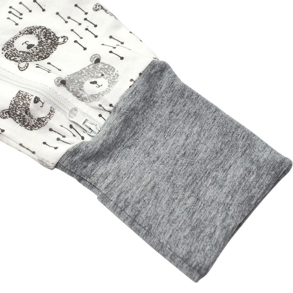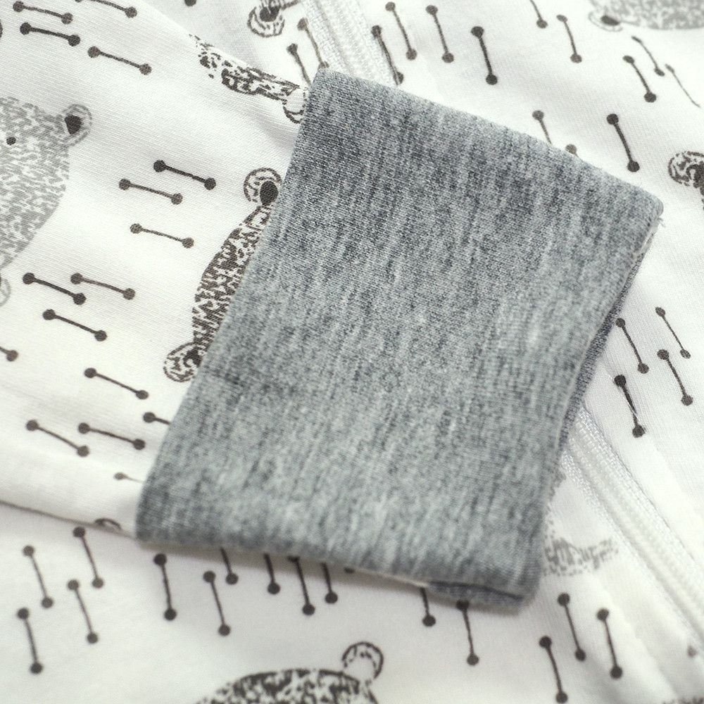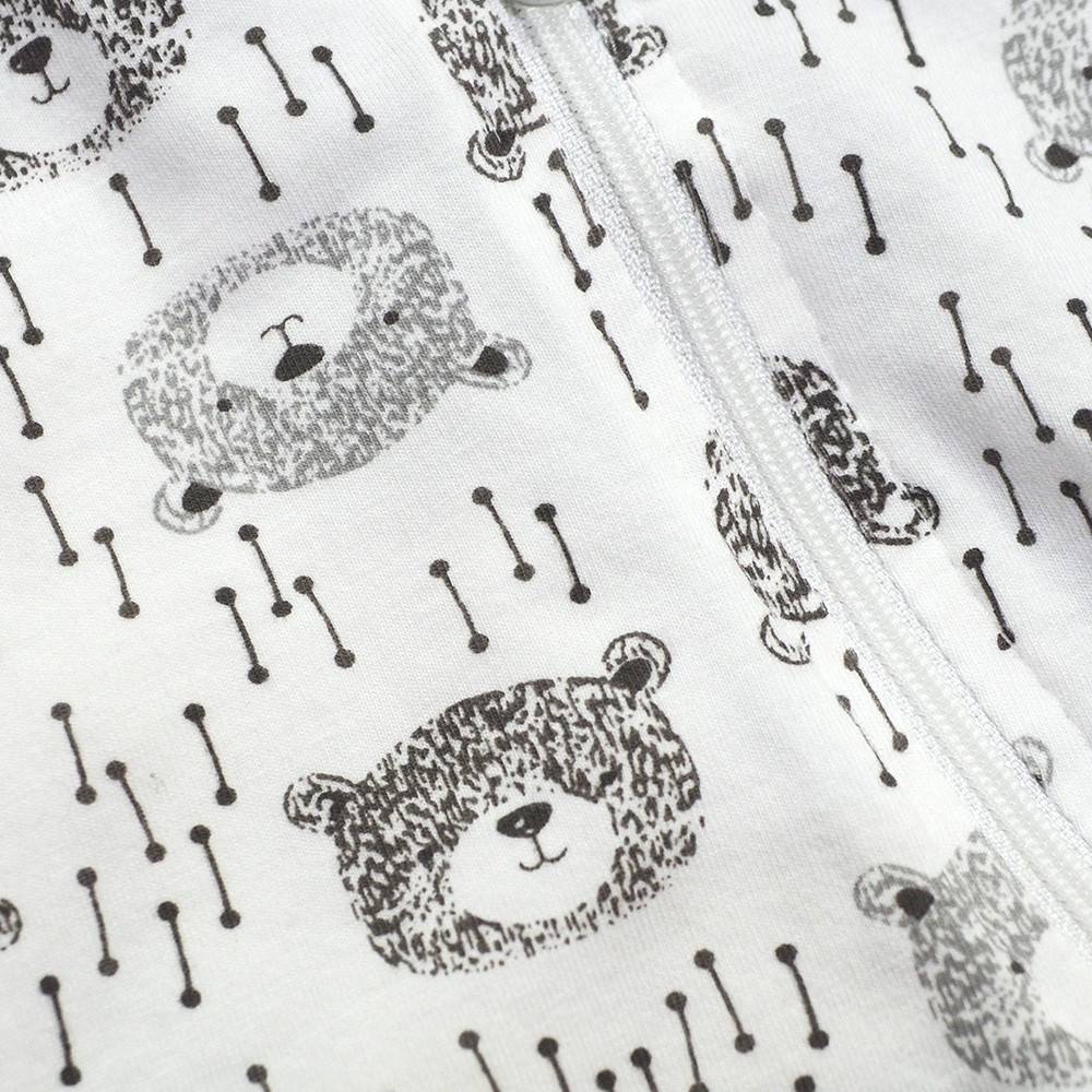 有機棉雙拉鍊長袖連身衣-大頭熊