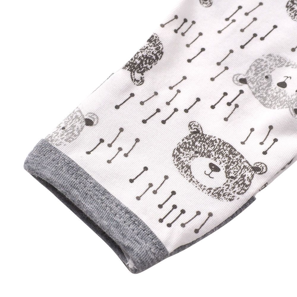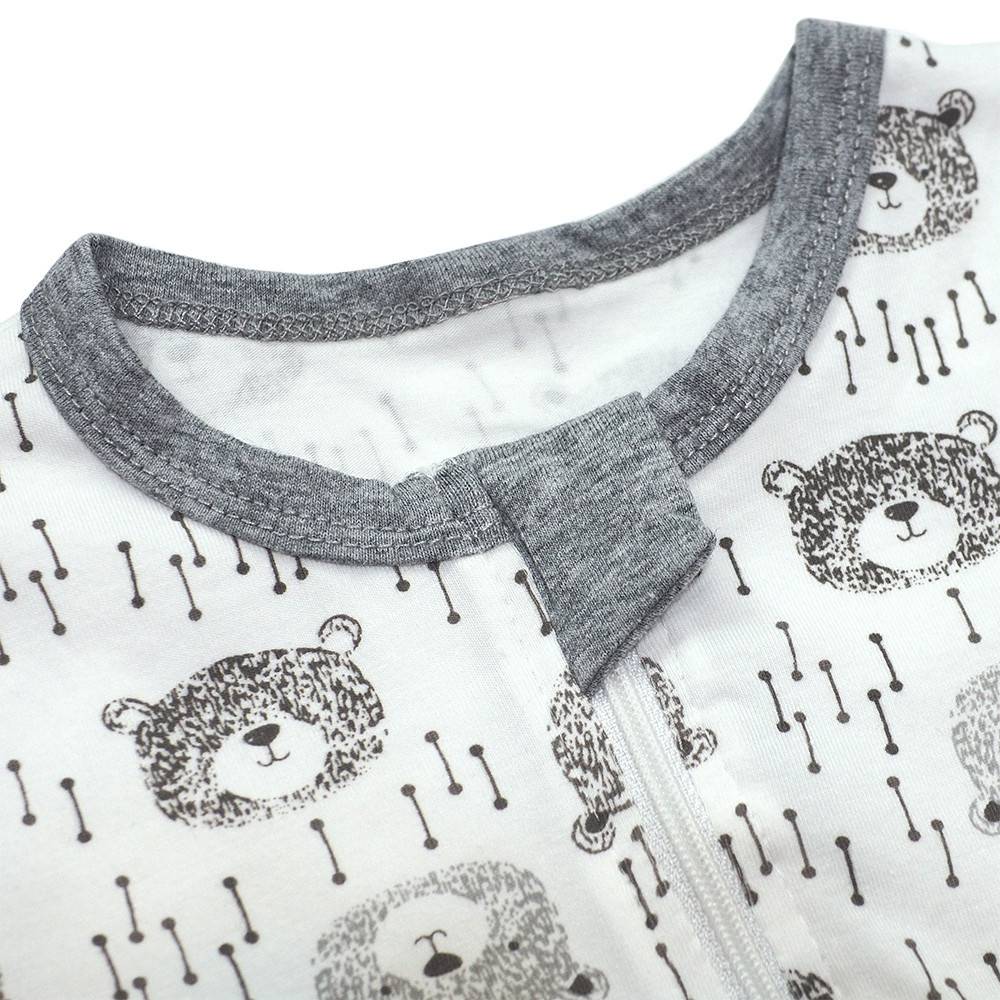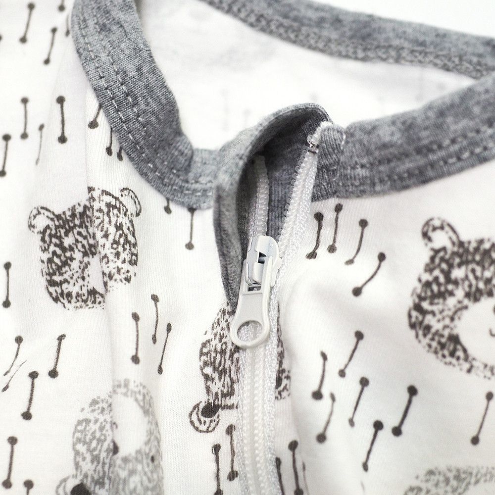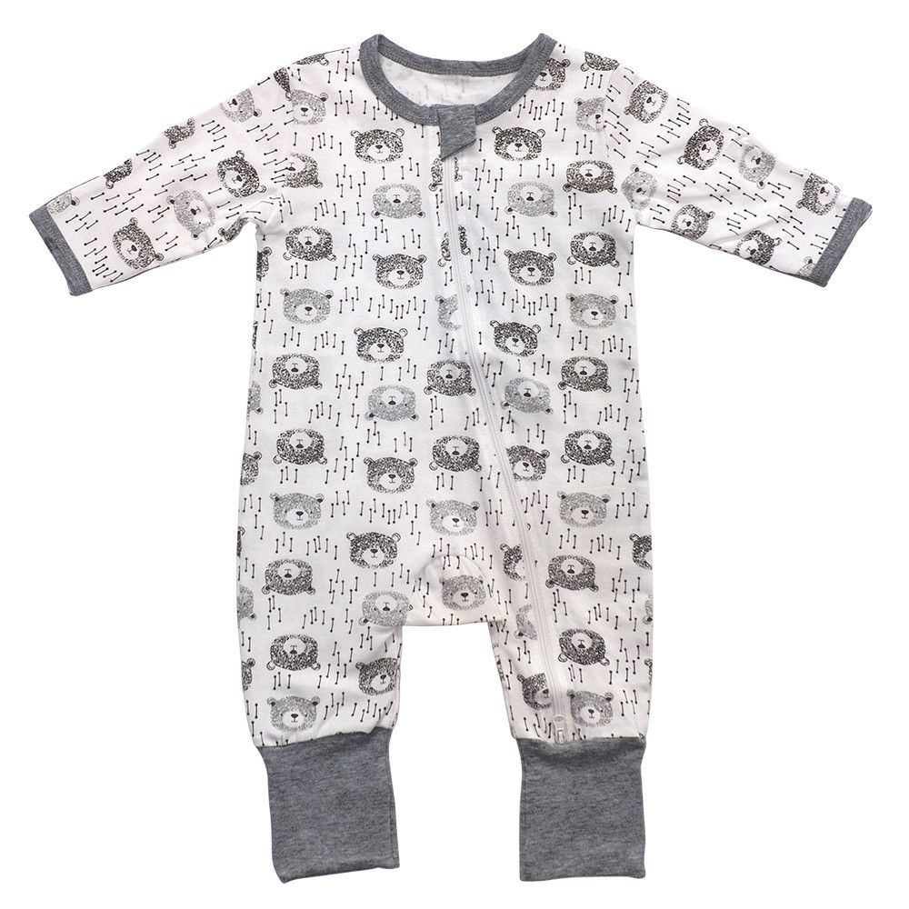 有機棉雙拉鍊長袖連身衣-大頭熊