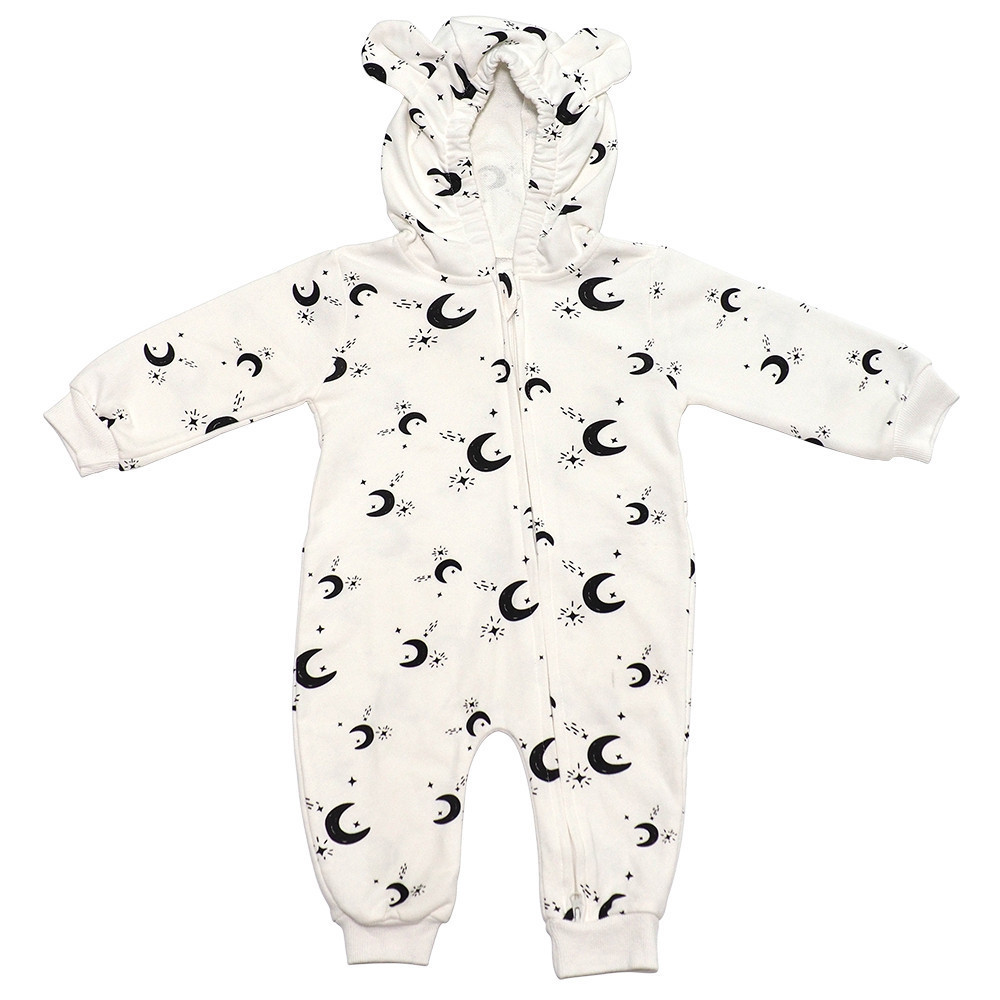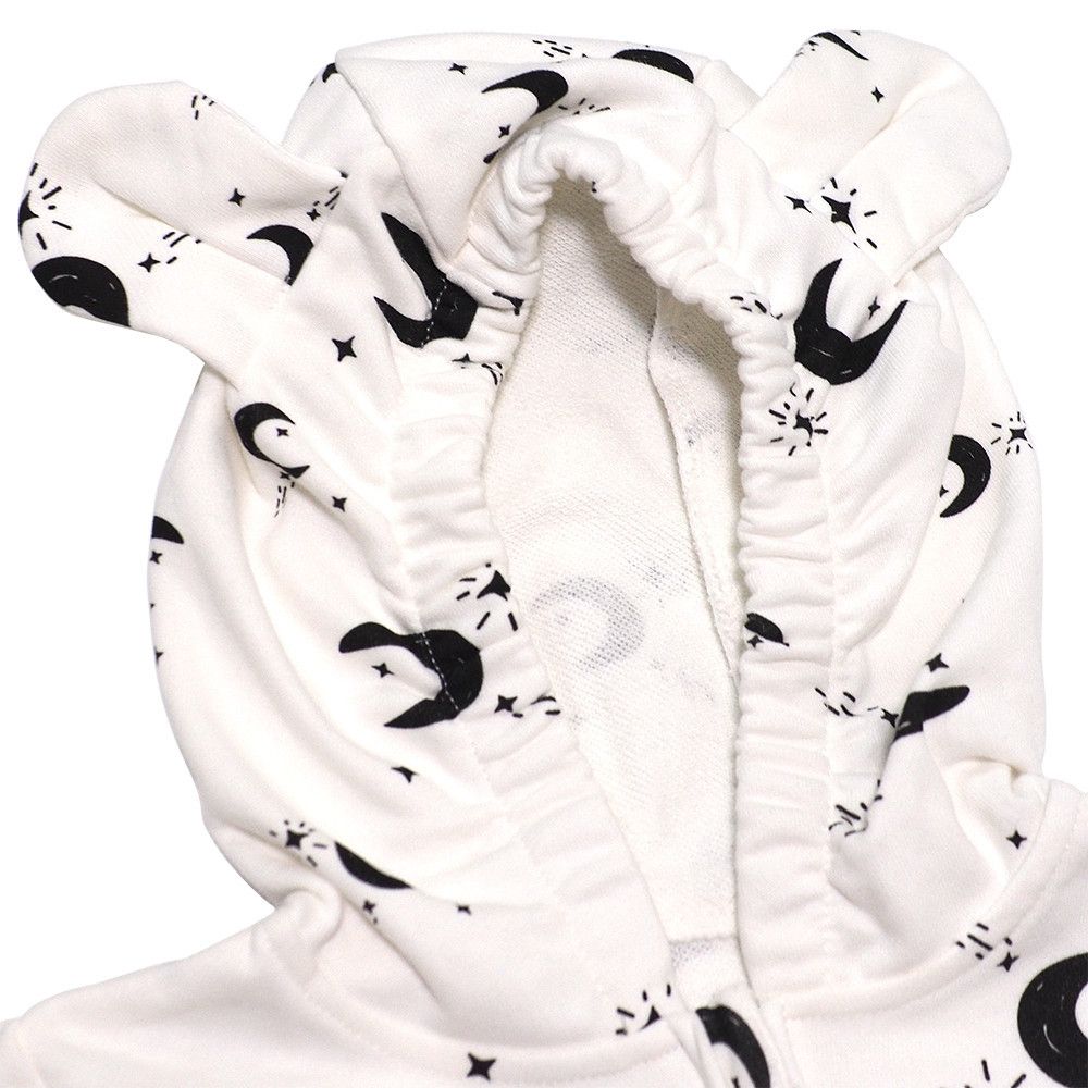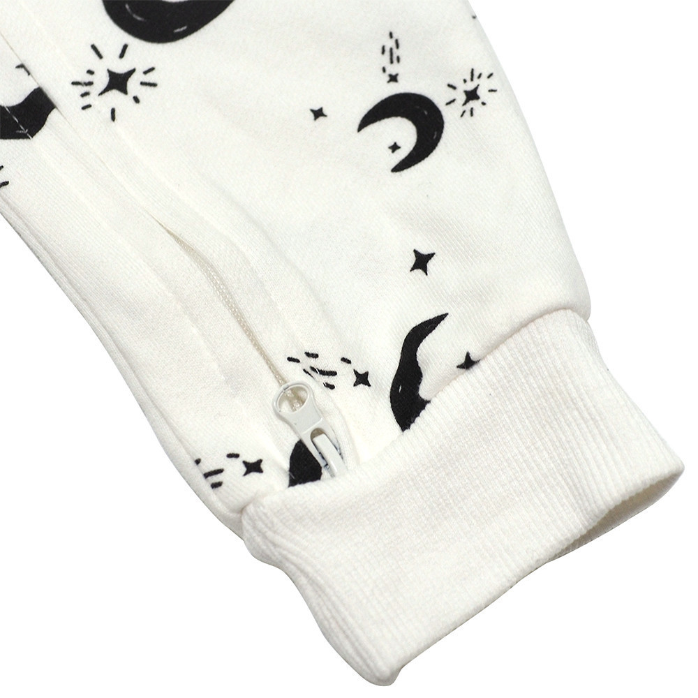 有機棉雙拉鍊長袖連身衣-星星月亮