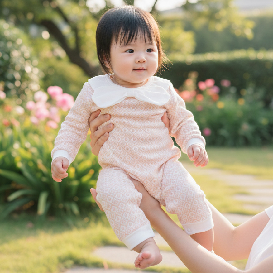 肩部開扣:擴大領口空間,輕鬆套入寶寶頭部,穿脫不卡卡。