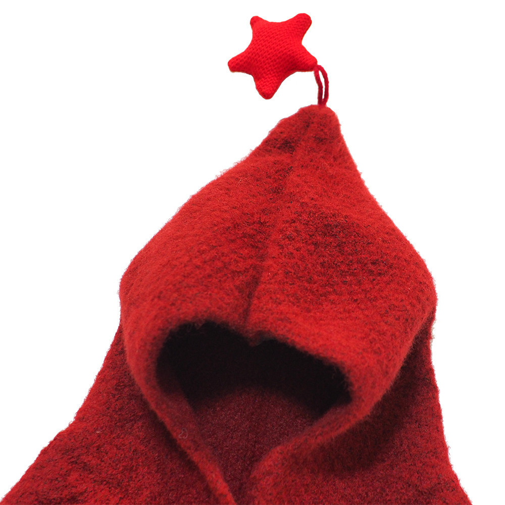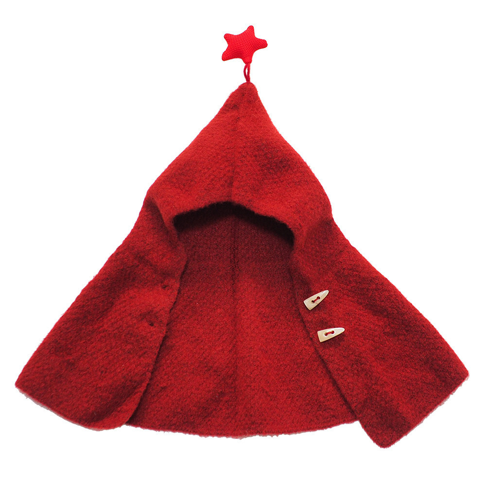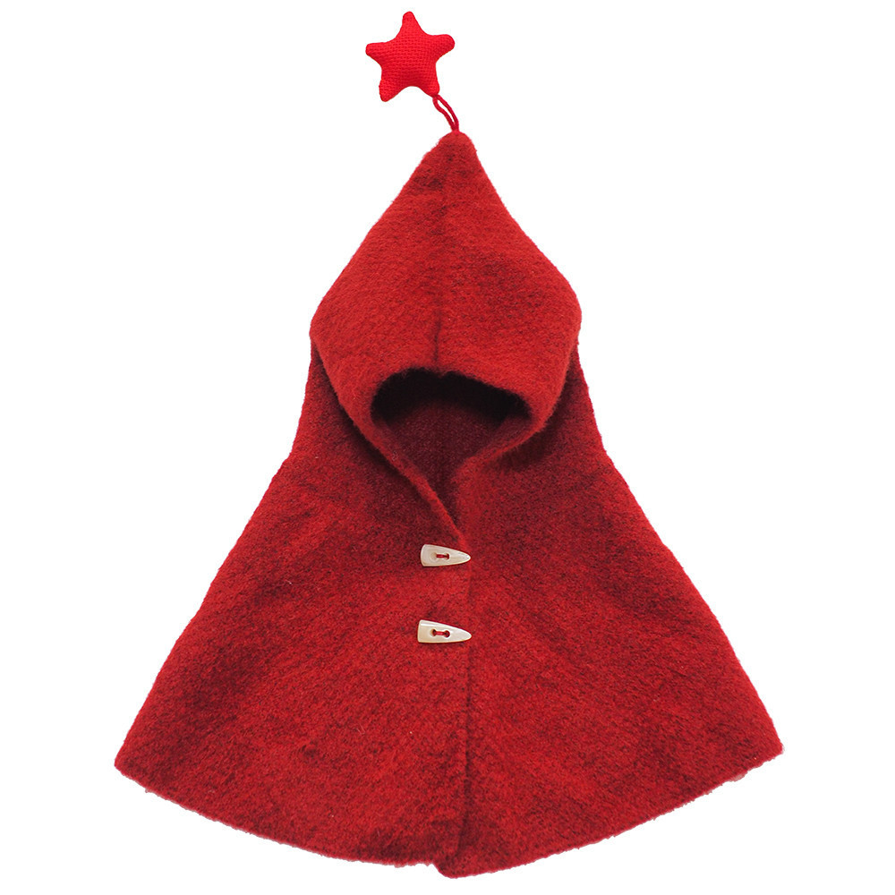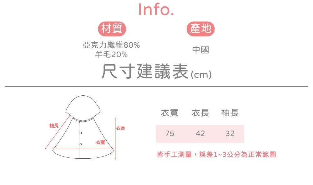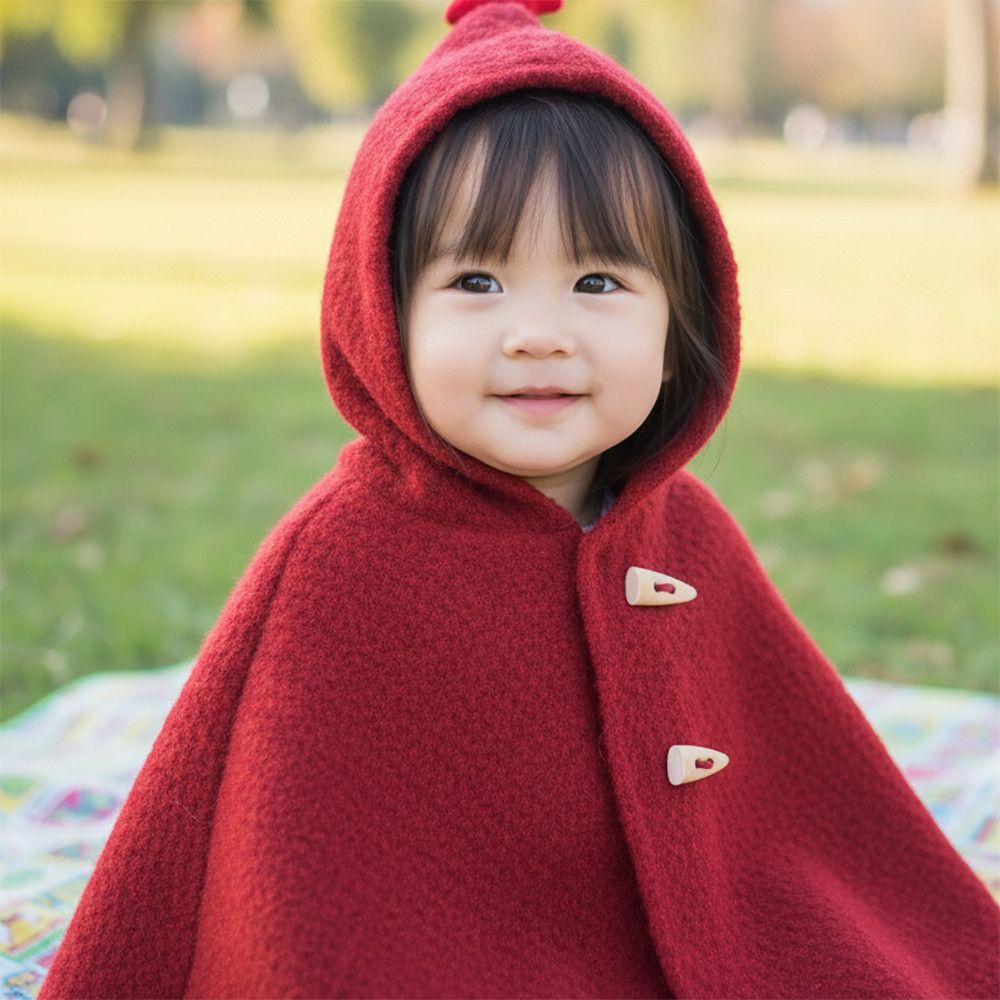 這款「披風-小紅帽」採用高品質 80% 亞克力纖維與 20% 羊毛 黃金比例混紡