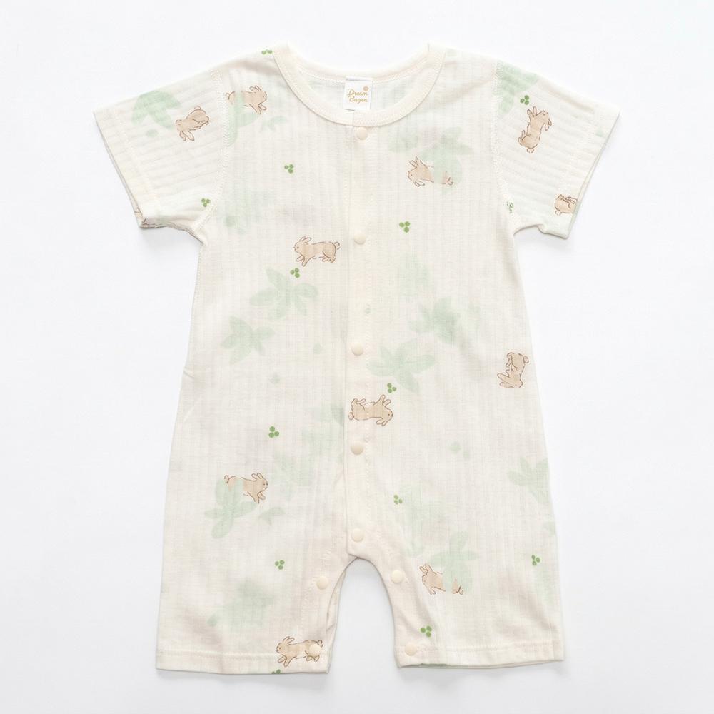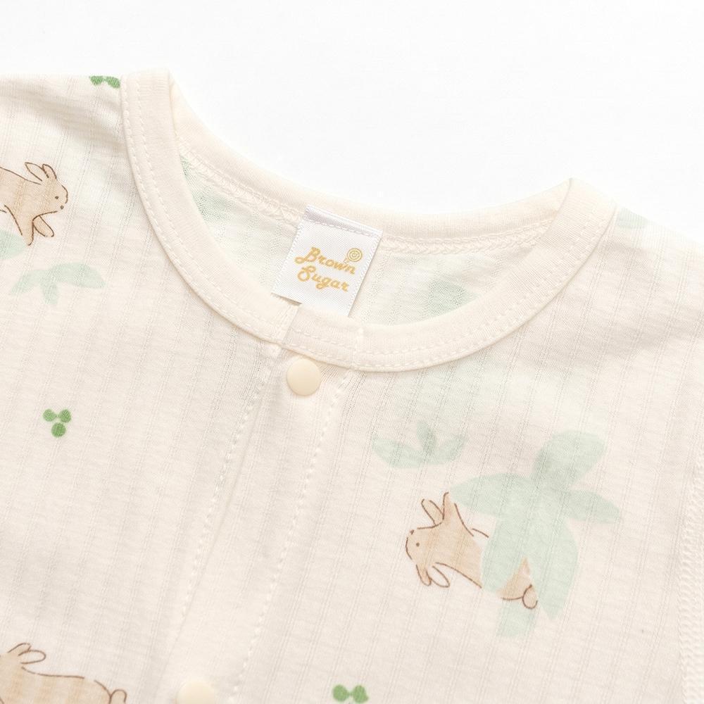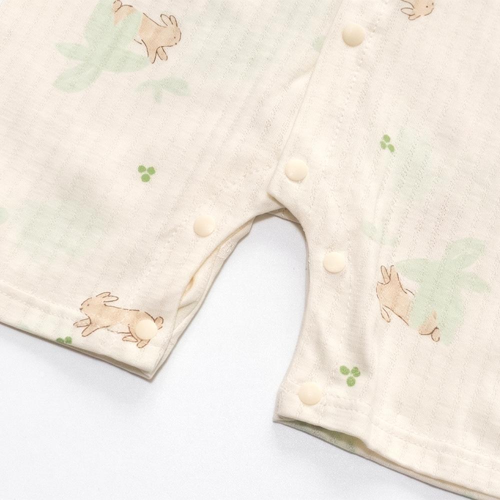 薄棉短袖連身衣,花園兔兔,100%純棉,台灣製童裝,環保印染,嬰兒涼感衣,包屁衣,寶寶夏日穿搭