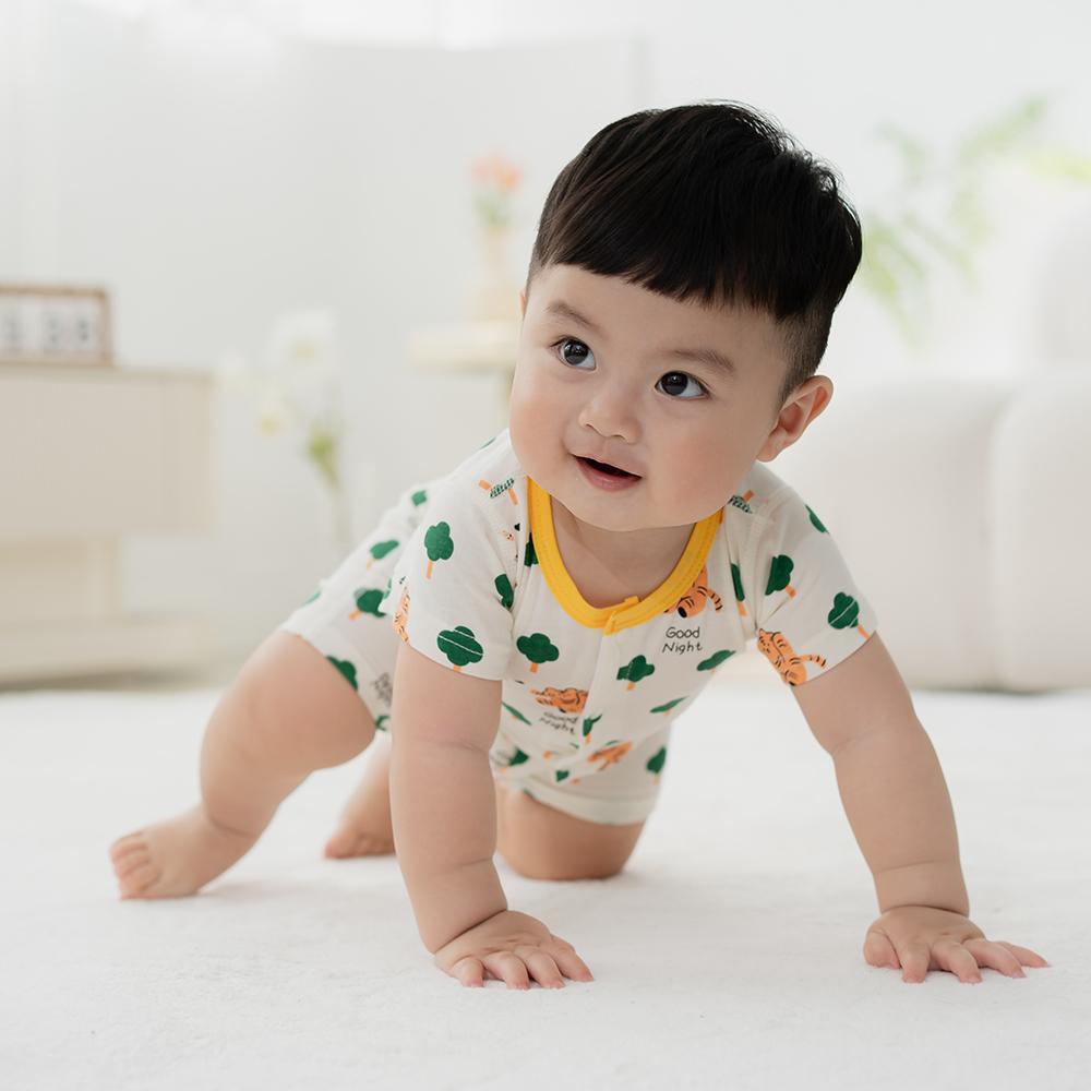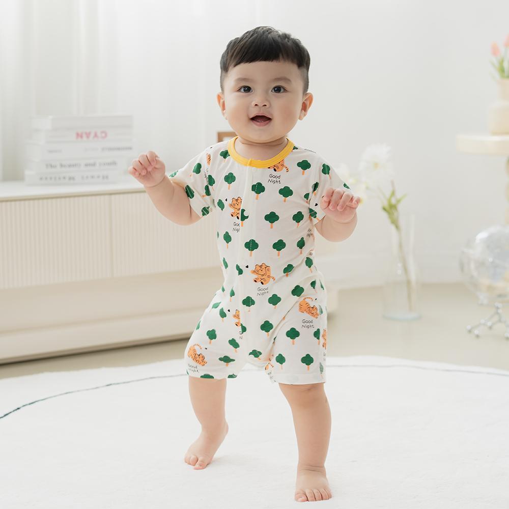薄棉短袖連身衣-森林小虎