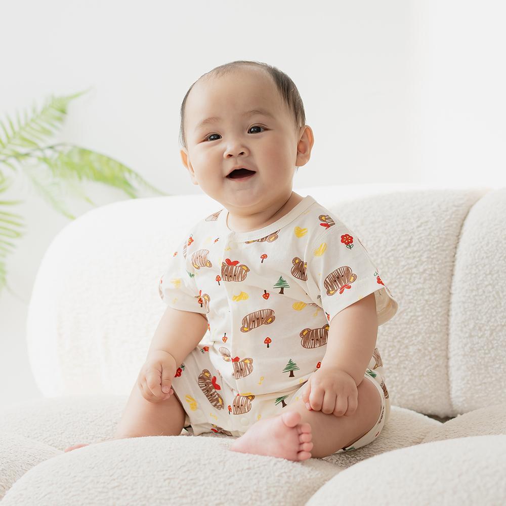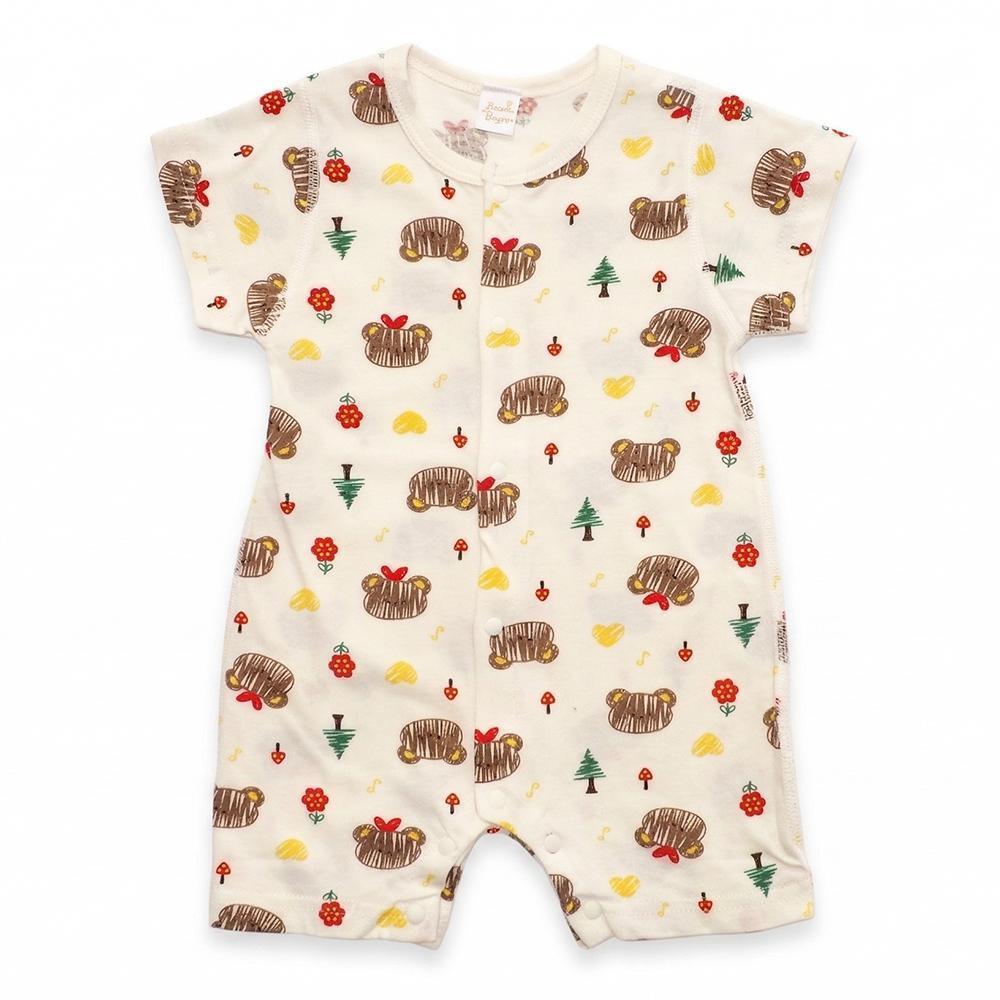 有機棉短袖連身衣,小花熊,100%有機棉,台灣製童裝,環保印染,嬰兒包屁衣,親膚嬰兒服,寶寶夏日服飾