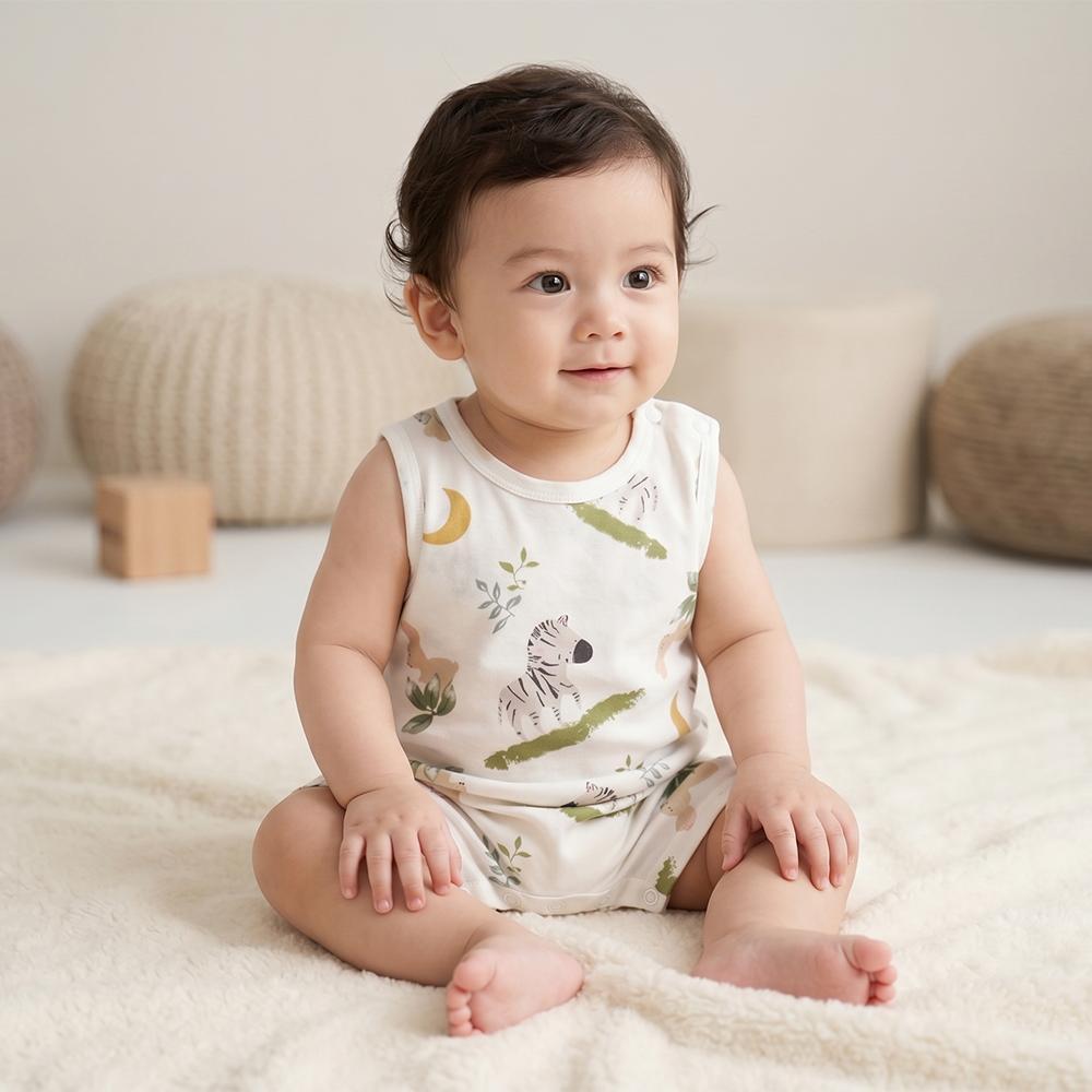 竹節棉無袖連身衣-斑馬小兔
